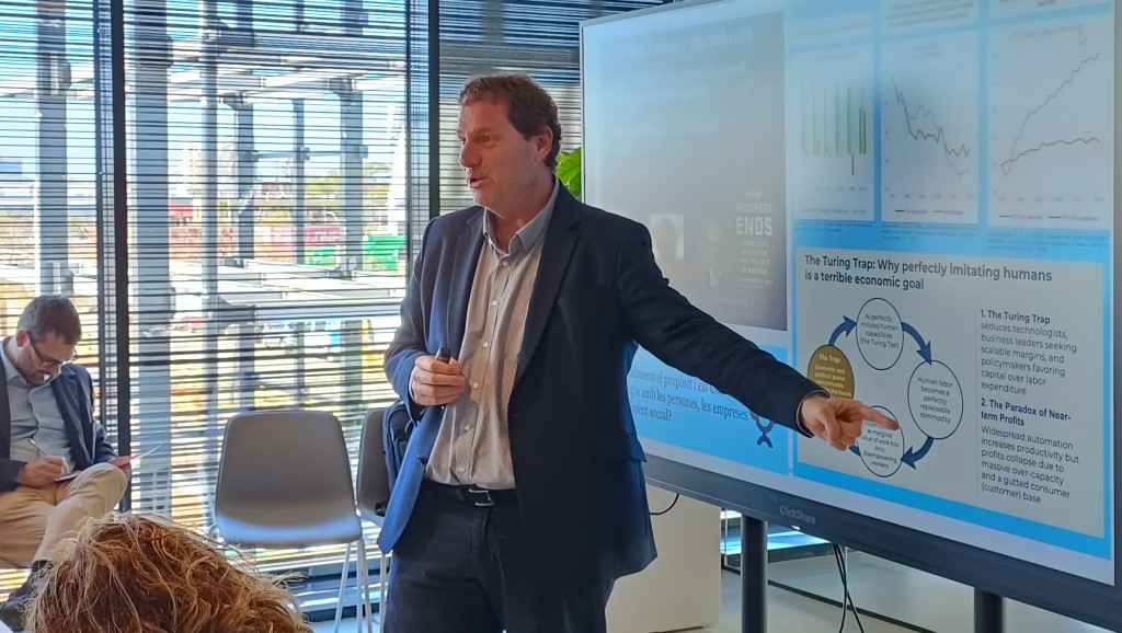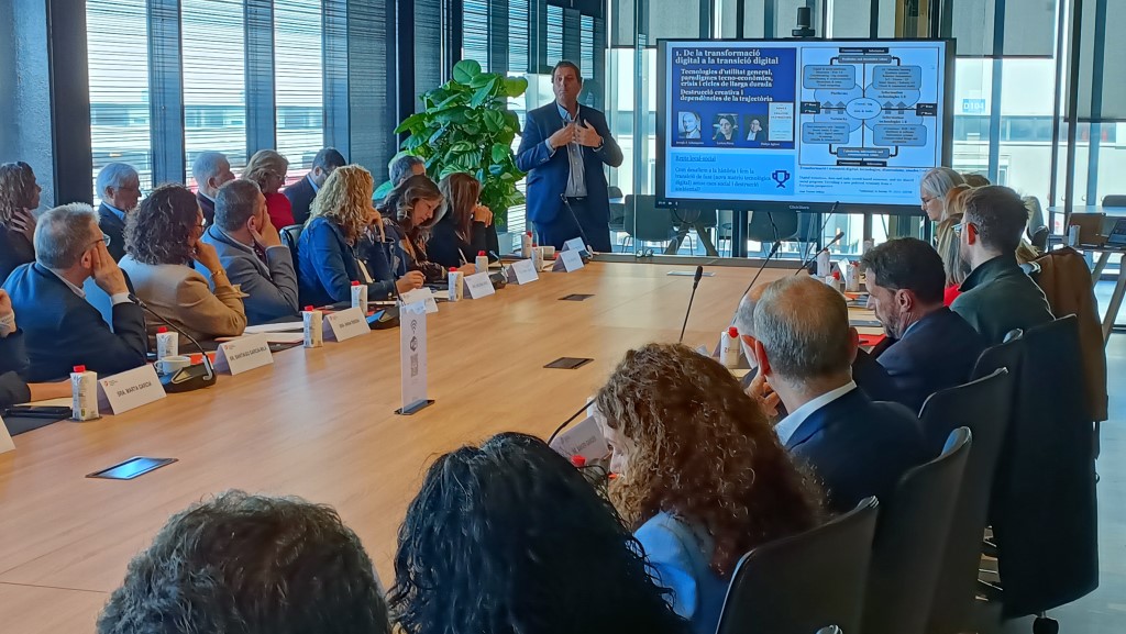 La reunió ha inclòs també una ponència del Dr. Joan Torrent-Sellens, catedràtic d’Economia de la Universitat Oberta de Catalunya (UOC) i director del Centre de Recerca en Transformació Digital i Governança (UOC-DIGIT), centrada en l’impacte de la intel·ligència artificial en la indústria i els ecosistemes locals.