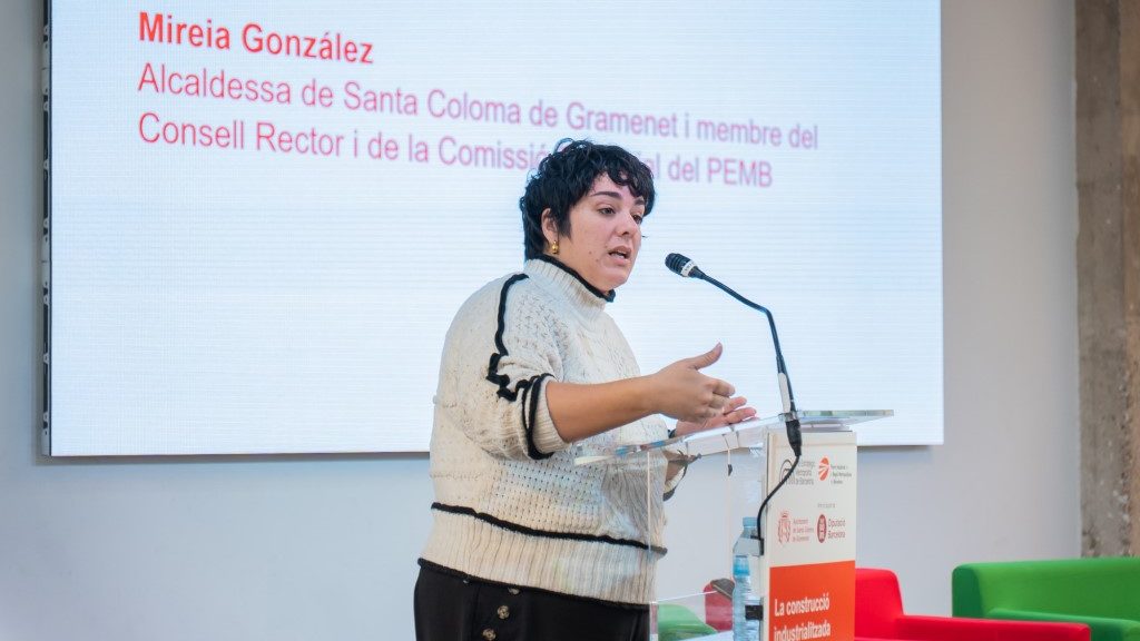 La alcaldesa de Santa Coloma de Gramenet y miembro del Consejo Rector del PEMB, Mireia González, ha comenzado la mañana señalando que a la construcción industrializada “le hace falta un salto de escala” para responder a la crisis de vivienda. Ha defendido que “las políticas públicas de vivienda tienen que ser valientes”, puesto que son claves para el bienestar de nuestra ciudadanía y la sostenibilidad del entorno. González ha destacado que los planes locales de vivienda de la ciudad afrontan los retos de incrementar el parque existente, rehabilitarlo y prevenir la pobreza energética, y ha expresado el deseo que la jornada actúe como “palanca” para hacer fluir la transformación del sector. También ha subrayado el sentido de celebrar el acto a La Ciba, un espacio de referencia en políticas feministas: la industrialización como oportunidad para impulsar la ocupación femenina y un modelo más sostenible y respetuoso con el entorno, y al mismo tiempo contribuir a dinamizar la economía local y europea.