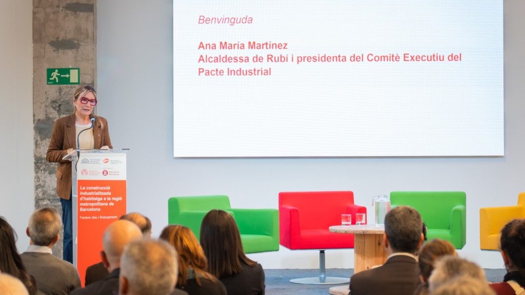 Por su parte, la alcaldesa de Rubí y presidenta del Comité Ejecutivo del Pacto Industrial, Ana María Martínez, ha recalcado que la industrialización de la construcción es clave para dar una respuesta inmediata al problema urgente de la vivienda que tenemos hoy, y que esta es una condición necesaria, pero no suficiente, para afrontar este reto. Martínez ha apuntado que tenemos municipios más concentrados y otros más pequeños y dispersados, pero el que tenemos que hacer todas las administraciones es buscar y activar palancas para conseguir hacer un salto de escala en este sector y acelerar la respuesta. “Esta presión se incrementa en todo el territorio metropolitano y ya afecta la 2.ª corona”. También ha avisado que estamos poniendo en riesgo la cohesión social del país si no se actúa con decisión, y ha reivindicado que “las políticas públicas relativas en la formación, la financiación y el marco regulatorio son claves para la transformación del sector”.
